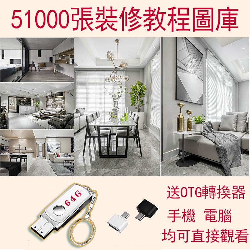 • 51000張室內裝修設計效果圖U盤64G 手機電腦看各種裝修風格全景案例方案 NT$1290 詳情
