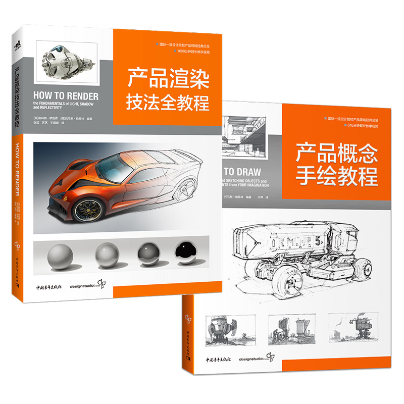 產品渲染技法全教程+產品概念手繪教程 2冊 工業設計 模型設計 視覺設計(掃碼觀看1000分鐘教學視頻)