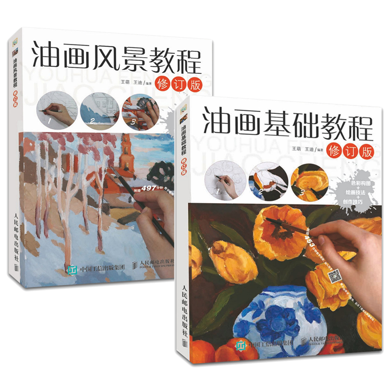 【全彩+視頻教學】2本 油畫基礎教程+油畫風景教程 零基礎自學油畫技法知識 色彩構圖 繪畫技巧