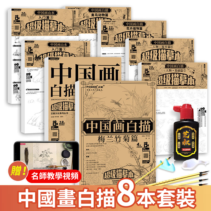• 【贈視頻教程+國畫毛筆+一得閣香墨汁+墨碟】國畫8冊 山水 人物 花卉 禽鳥 梅兰竹菊 套裝淺印慢描,輕鬆掌握100種國畫技法,快速掌握經典筆法,技巧,控筆! NT$780 詳情