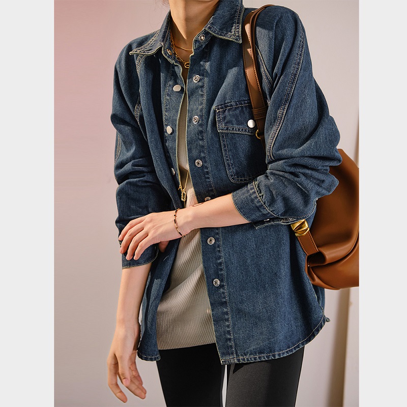 • 摩登口袋牛仔襯衫 百搭長袖襯衣夾克短外套春 NT$1185 詳情
