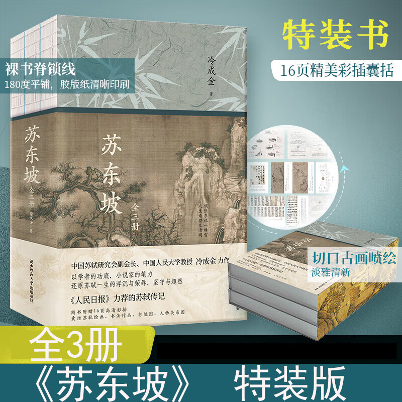 《蘇東坡》特裝版(全3冊)彩印 裸脊鎖線 講述了蘇東坡大江東去、波瀾壯闊的一生,從政治、文學、情感等方面生動立體地再現了蘇東坡的形象