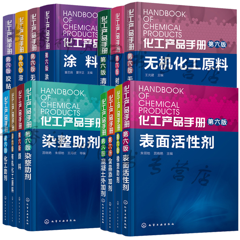 化工產品手冊(第六版)全套14冊 有/無機化工原料 膠黏劑 溶劑 塗料 樹脂與塑料 顏料 化工助劑 清洗化學品 表面活性劑 食品添加劑 混凝土添加劑 染整助劑 橡塑助劑