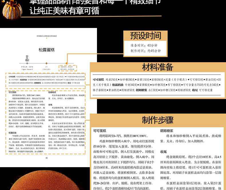 本書推薦了法國權威糕點協會(Relais Desserts)中*秀的甜點師的100個食譜,介紹了包括馬卡龍、法式甜點、撻、裱花蛋糕等在內的100款經典法式糕點的製作方法,除了每款糕點的精美成品圖,還配有高清圖詳細演示關鍵步驟。同時,附有常見製作技法與竅門、常用食材索引,便於專業人士及美食愛好者學習、閱讀和掌握。