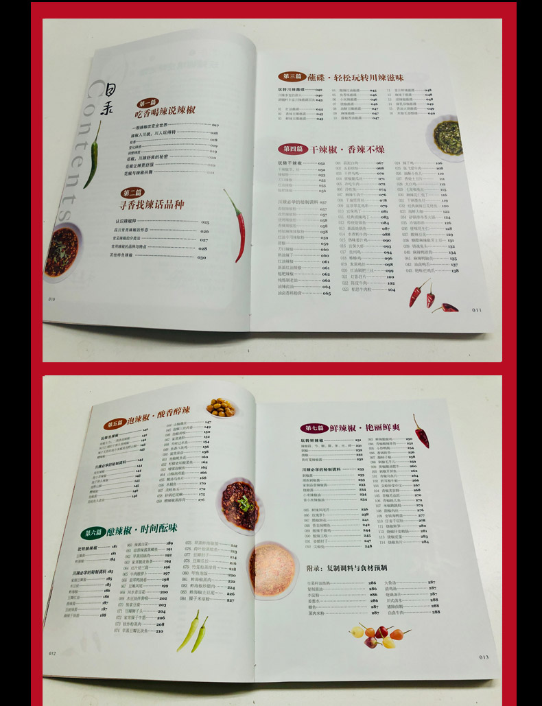 《麻辣江湖:辣椒與川菜》介紹了川菜常用辣椒以及特色辣椒的品種和特點,川辣多變的源頭和調味料的豐富滋味。書中詳細介紹了30種干辣椒+22種鮮辣椒+12種辣椒形態+16道百搭蘸碟+114道經典、新派、火爆川菜,是一本系統認識辣椒,學習川菜廚師使用辣椒的哲學與秘籍的書籍。