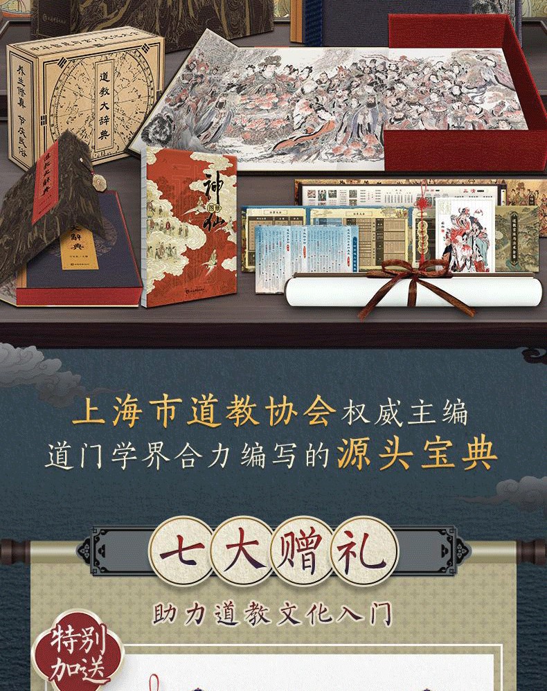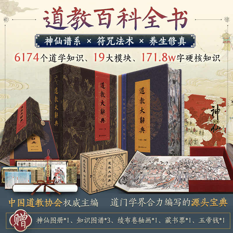 道教大辭典(刷邊特裝盒函版) (附贈 神仙圖冊+知識圖譜+綾布捲軸畫+藏書票)