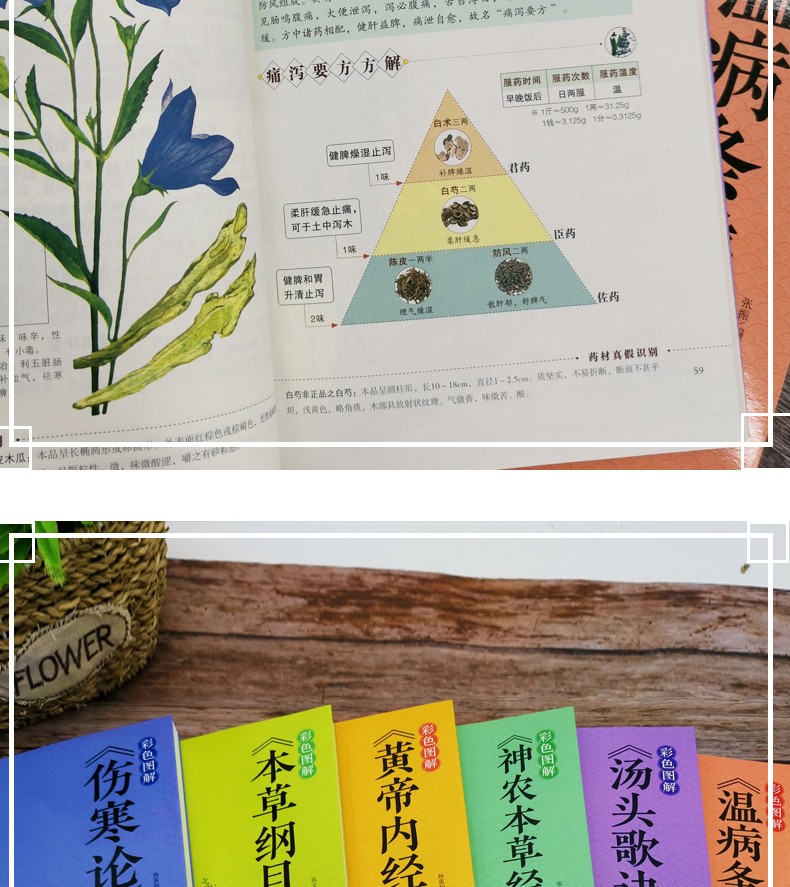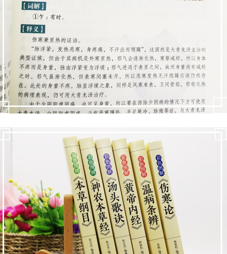 正版6冊彩色圖解中醫名著 本草綱目 黃帝內經 神農本草經 傷寒論 湯頭歌訣 溫病條辨 中醫基礎理論養生大全