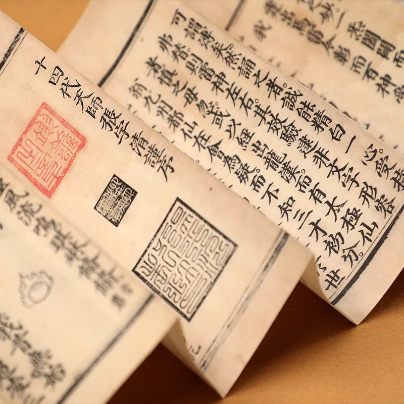 雷霆玉經 《無上九霄玉清大梵紫微玄都雷霆玉經》繁體豎排 經折裝一函一冊(明)朱真泓 本經卷端之雷部諸眾 神態生動,線條流暢,經內文字渾元精整