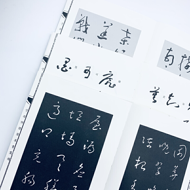 《于右任標準草書集錦》以四個不同版本(由于右任集字或親自執筆)的草書《千字文》進行對照研究,以“易識,易寫、準確,美麗”之四原則為標準,將歷代草書的章法做了一番系統的整理和總結。