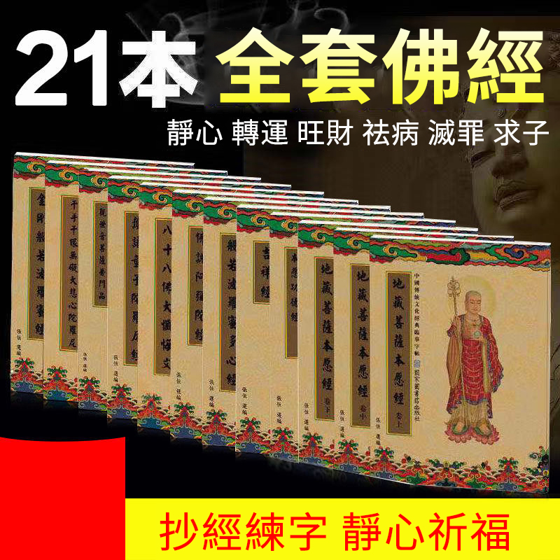 【全21本手抄經】佛經硬筆楷書臨摹字帖,每天抄寫經文,積德行善,結佛緣,旺運勢!比吃齋還要夯100倍!堅持「手抄經」功德無量 (贈 抄經筆 筆芯 筆袋 經書袋)