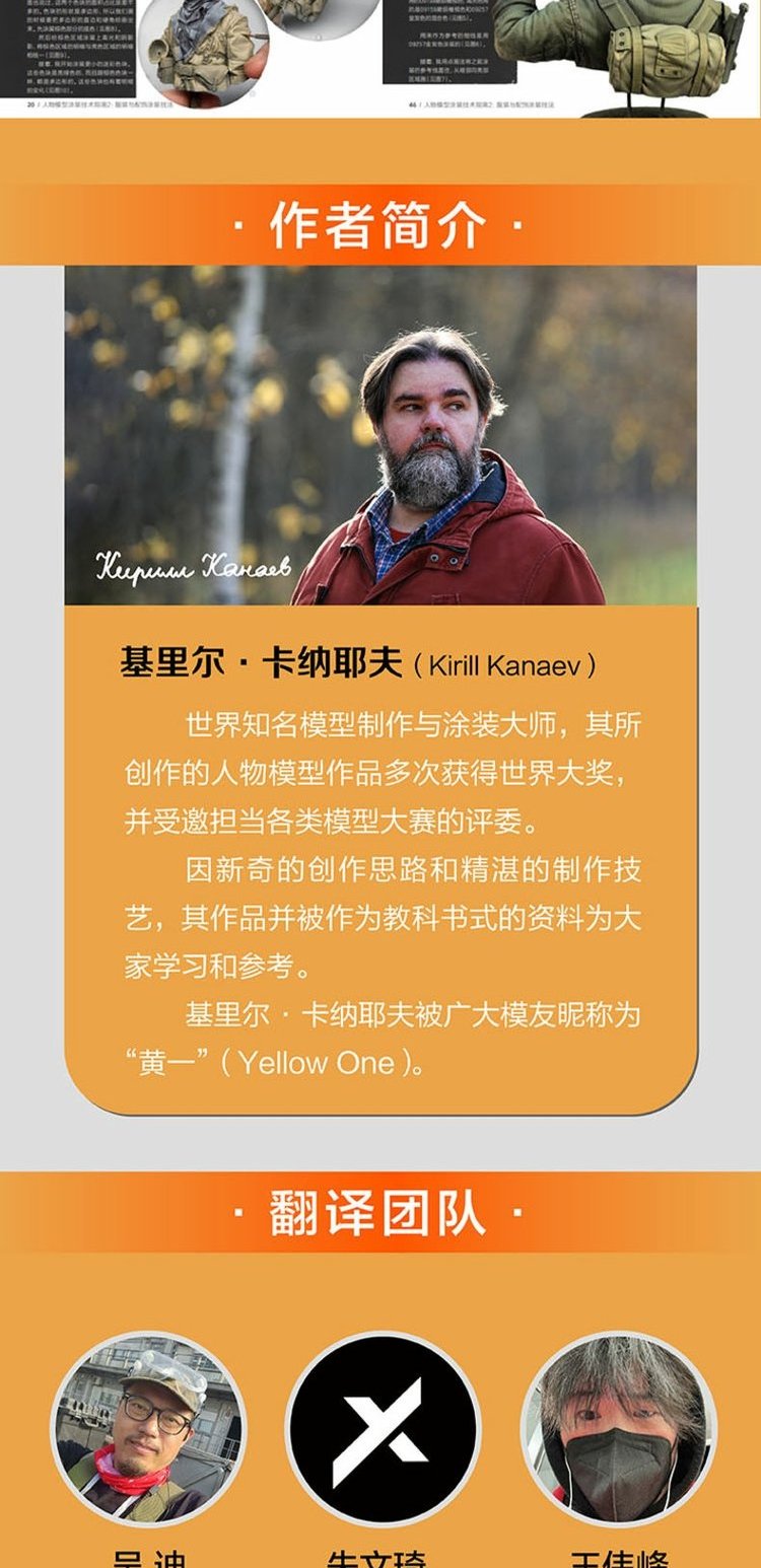 基里爾•卡納耶夫(Kirill Kanaev) 世界知名模型製作與塗裝大師,其所創作的人物模型作品多次獲得世界大獎,並受邀擔當各類模型大賽的評委。因新奇的創作思路和精湛的製作技藝,其作品並被作為教科書式的資料為大家學習和參考。基里爾•卡納耶夫被廣大模友暱稱為“黃一”(Yellow One)。