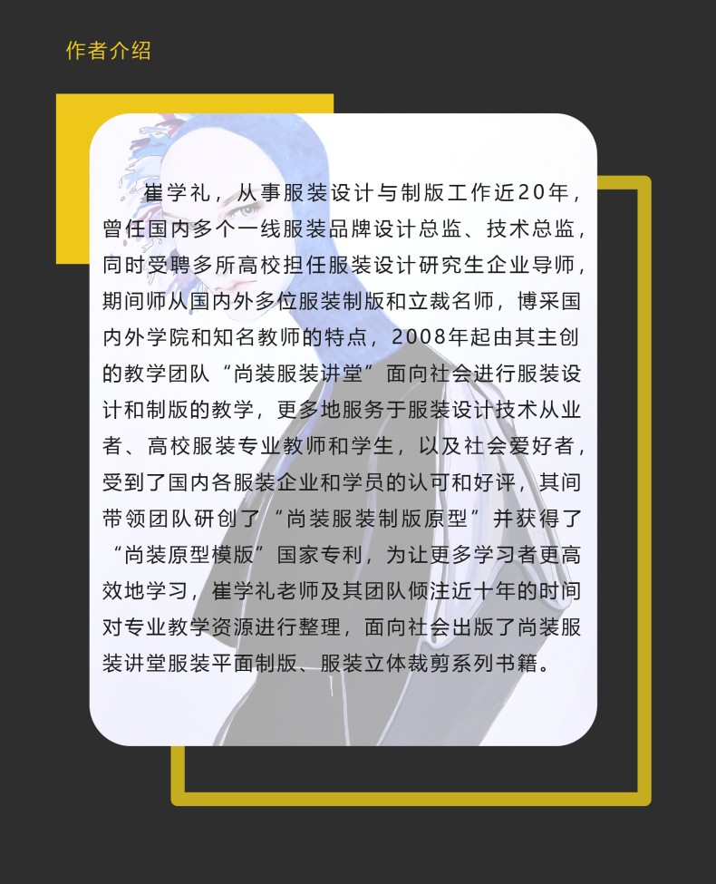 尚裝服裝講堂《服裝立體裁剪Ⅰ》是立體裁剪的基礎篇,它適用於服裝專業學生、行業從業者自學使用及院校教師作為基礎教材使用。本書在編寫過程中力求每個要點都標註清楚;每個步驟之間的連帶關係都交代明確;每個手法、動作都能清晰地展現給讀者,讓使用本書的人看得清楚,學得高效。本書的姊妹篇《服裝立體裁剪Ⅱ》更加深入和系統地展示了各種款式變化及立裁手法,如能在這兩本書的基礎上堅持學習,持續訓練,逐漸領會立裁的技巧與造型規律,便能有效地提升設計師與製版師的造型技術與設計能力。本書是尚裝服裝講堂《服裝立體裁剪Ⅰ》的姊妹篇,此書由兩大部分組成,分別是“成衣篇”和“提高篇”。 “成衣篇”中精選了有代表性的領型、袖型、身型,這些都是在各成衣品牌中普遍存在的款式。立裁的技法中,加放鬆量是重點,本書列舉了幾種不同的設置松量方法,展示了由緊身款式到寬鬆款式的松量變化規律。 “提高篇”中出現的款式在外觀造型與內在結構上都有一定難......