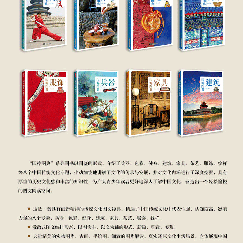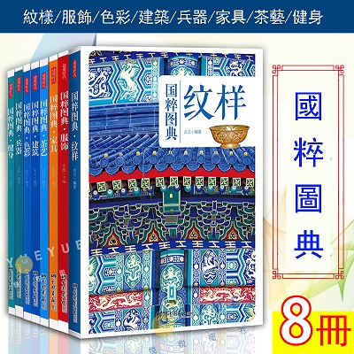 國粹圖典8冊 (共8本)紋樣 服飾 色彩 建築 兵器 家具 茶藝 健身 古代紋樣圖典 素材集 傳統寓意吉祥圖案