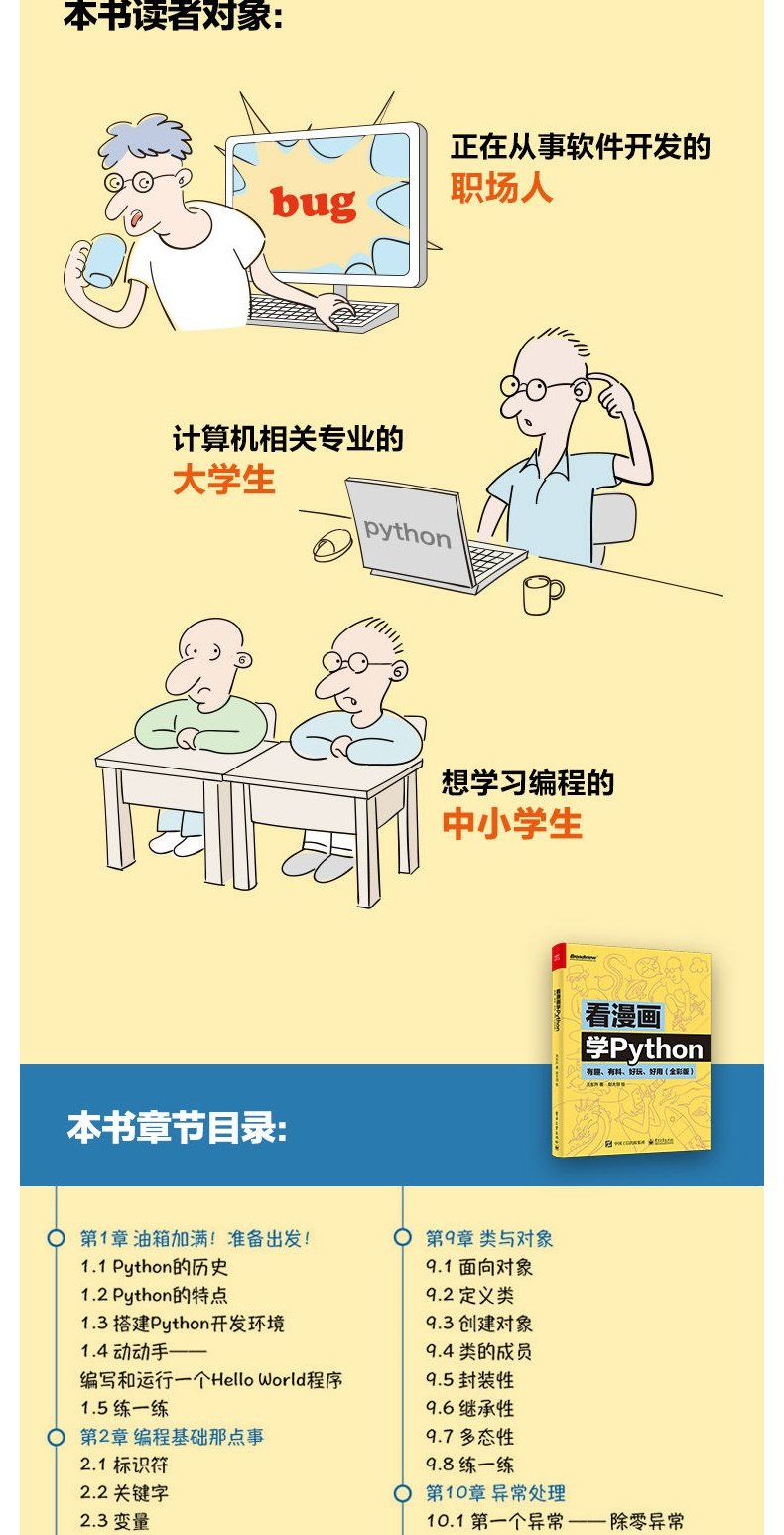 "看漫畫學Python,有趣、簡單! 提供配套視頻、定期答疑 小灰、大鬍子、臧秀濤等力贊! 關東昇、趙大羽新作"