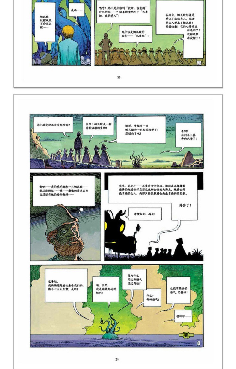文如其題(「混亂」),這是一篇廢話滿篇、邏輯混亂的序言,卻能讓人讀得津津有味、忍俊不禁。墨比斯始終認為他的作品應該被歸類為幽默類,一種有點幼稚的超現實主義幽默,從這篇序言裡亦可一窺他骨子裡的幽默感。