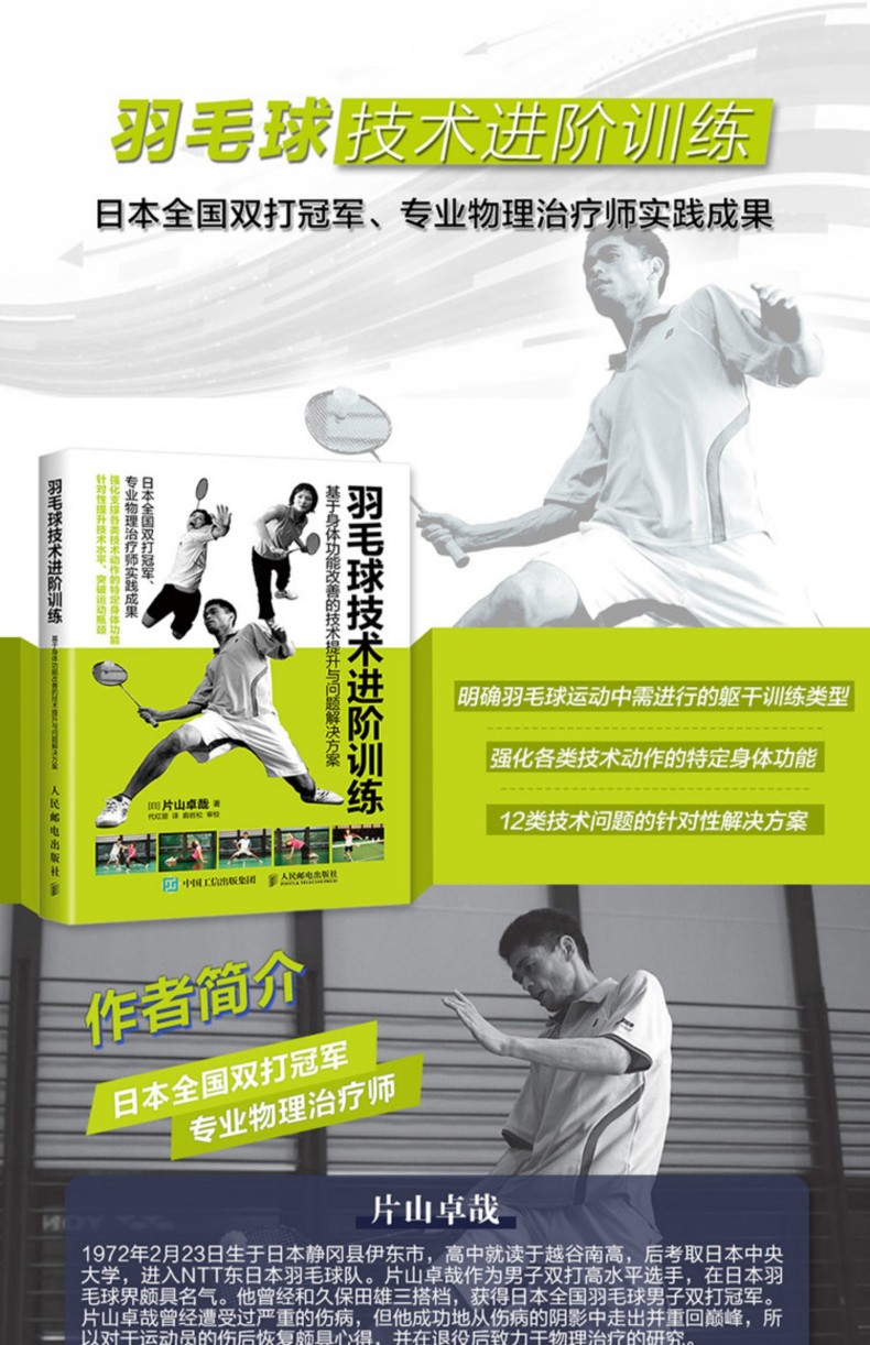 本書是日本羽毛球全國雙打優選、專業物理治療師片山卓哉為廣大羽毛球愛好者寫作的運動表現提升書。