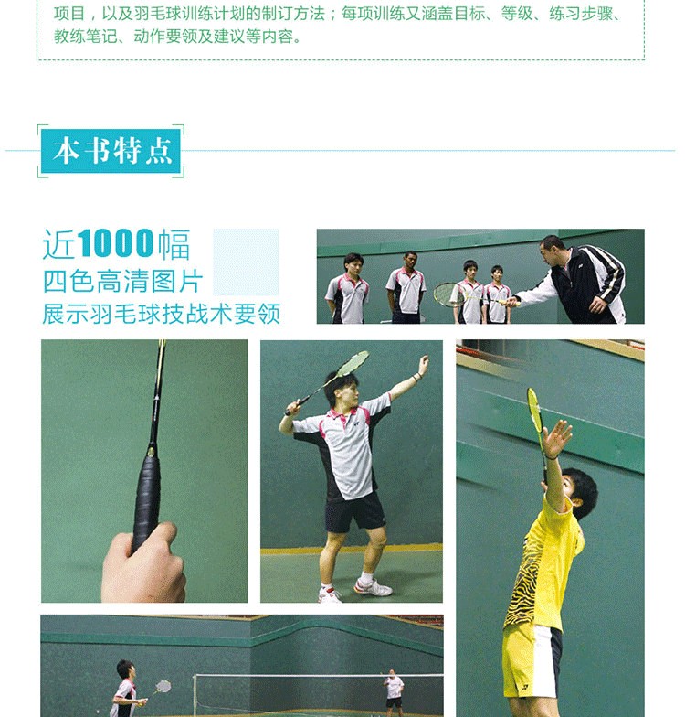 舛田圭太主編的《圖解羽毛球技術和戰術(基礎訓練200項)》是羽毛球基本技術和戰術的訓練攻略,全書包括針對羽毛球基本技術、殺球、高遠球·吊球、網前球、接發球、平抽球、發球、單打的戰術訓練、雙打的戰術訓練、多球訓練、體能訓練等200項基礎訓練項目,以及羽毛球訓練計劃的製訂方法;每項訓練又涵蓋目標、等級、練習步驟、教練筆記、動作要領及建議等內容,並以真人實拍照片、示意圖形式細緻講解每項訓練內容和訓練方法。本書適合從小學生到國家隊選手的所有羽毛球運動員和愛好者夯實羽毛球基本功,並有效提高他們的羽毛球技戰術水平。
