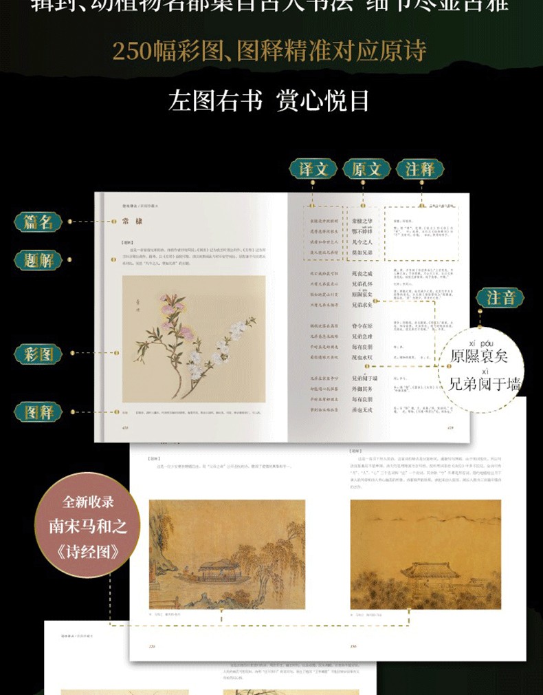 彩圖配有2萬餘字圖釋,全新收錄《詩經名物圖解》中未見的30餘幅彩圖,大飽眼福。