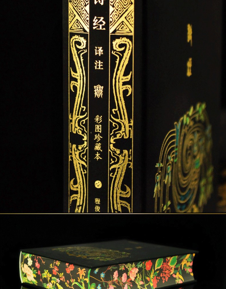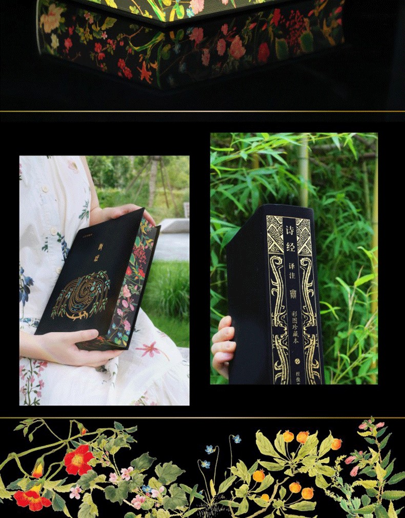 護封圖案雜糅《詩經》中的鳥獸草木、商末周初的父乙觥、「南宋四大家」馬和之《詩經圖》等歷代圖像及文物元素,彰顯《詩經》文化的源遠流長與藝術嬗變。