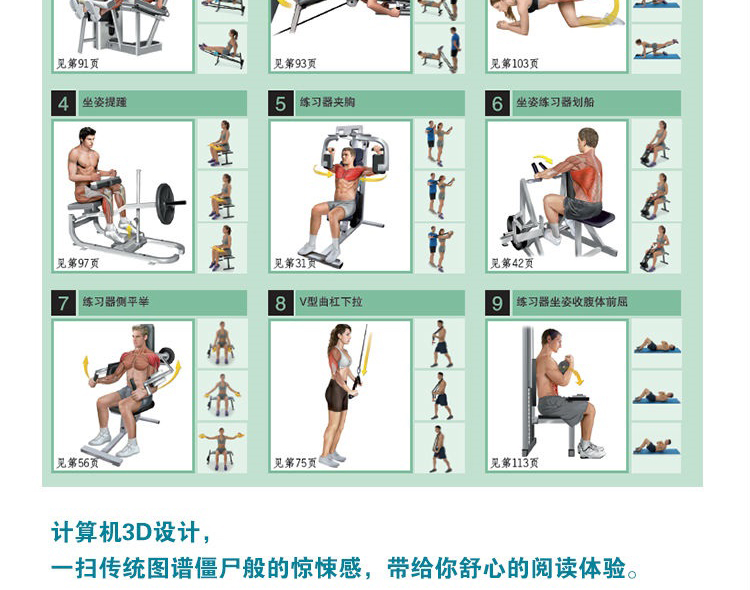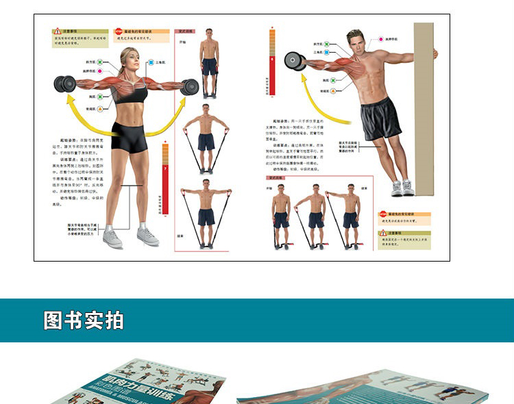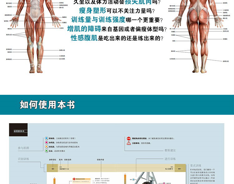2. 介紹了不同區域肌肉力量訓練的*好方法,對於每種練習方法都提供了詳細清晰的圖示和說明,展示了主要肌肉和輔助肌群的運動狀態。讀者可以按照書中圖示和文字說明進行練習,直觀方便。