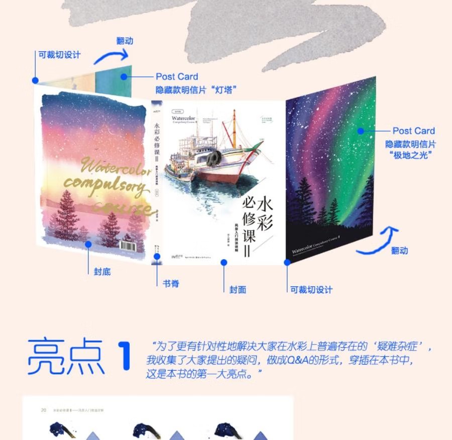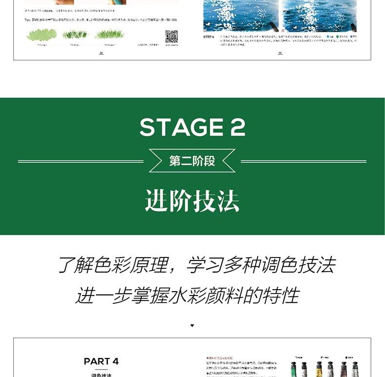 本書分為四大部分,內容包括24個特色技法案例與6個綜合技法案例。案例的知識點講解皆由淺入深,由簡入繁,且高濃度、強對比的畫面色彩效果特色鮮明。部分案例包含線稿分析、調色方法、步驟詳解和你問我答等結構,圖文結合,讓讀者在了解水彩技法的同時學會分析並處理複雜畫面的上色步驟,鍛煉對細節的觀察和深入刻畫的能力,體會寫實水彩帶來的別樣魅力。