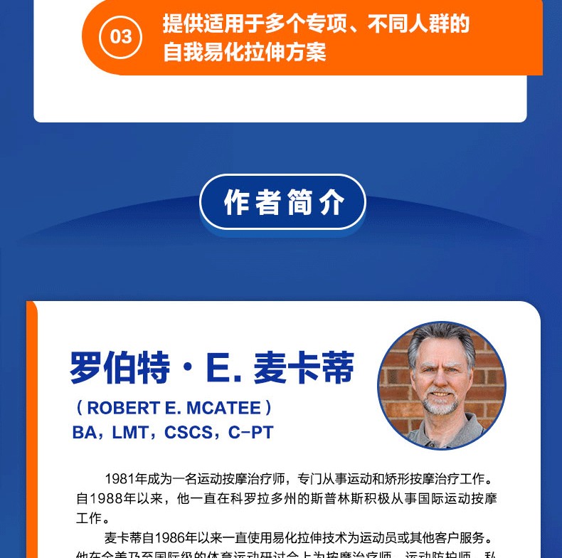 內容簡介易化拉伸主要分為2個部分,第1部分對易化拉伸技術的理論基礎和作用原理進行了闡述,第2部分採用真人示範圖解的形式,對身體各部位的主要肌肉的自我拉伸及輔助拉伸技術進行了講解,並提供了8套針對不同運動專項和人群的拉伸方案,旨在幫助人們通過拉伸預防損傷、提升運動表現和生活品質。