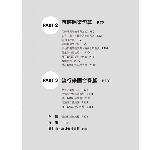 ●音樂技巧從基本到延伸,點→線→面完整構成樂曲層次