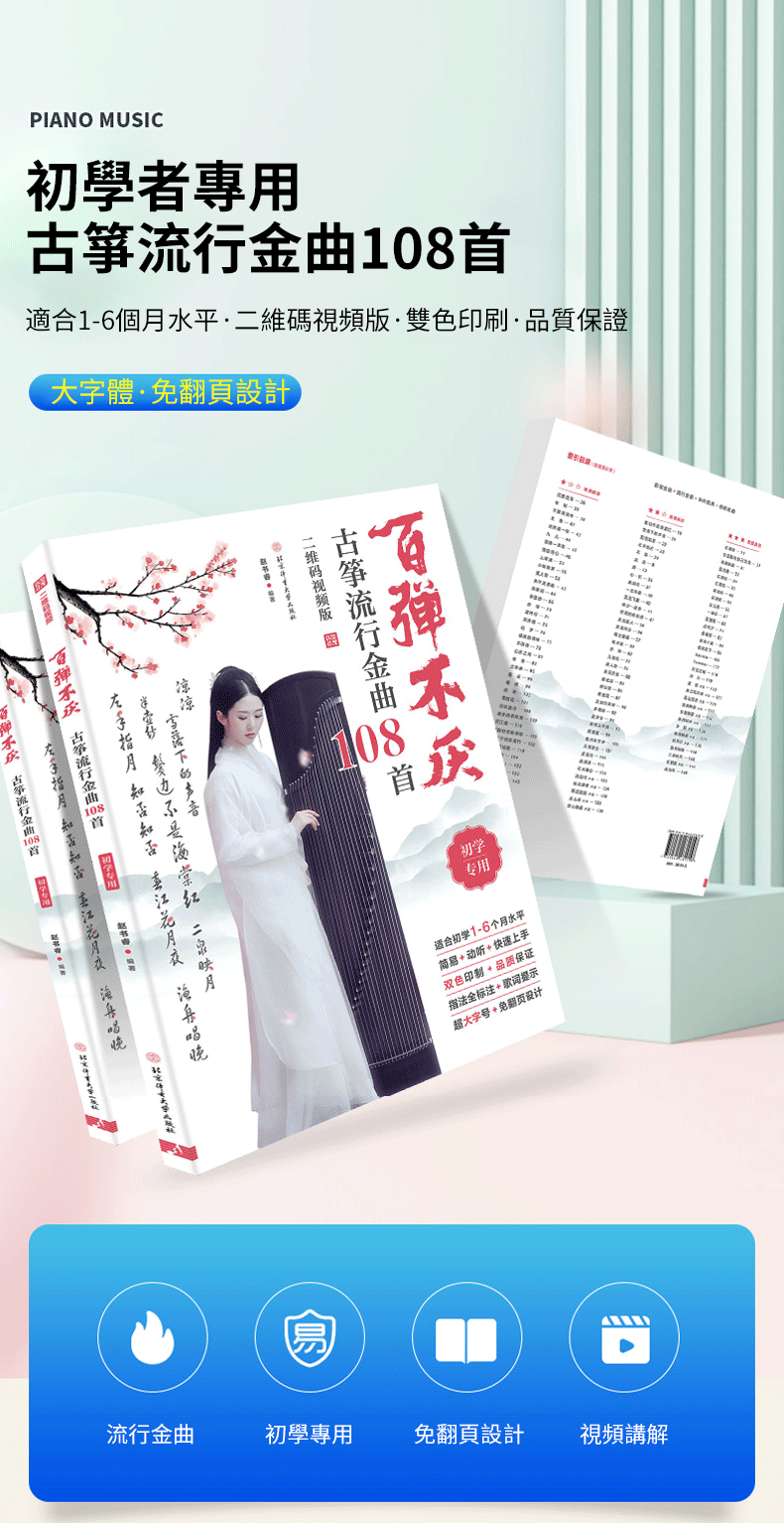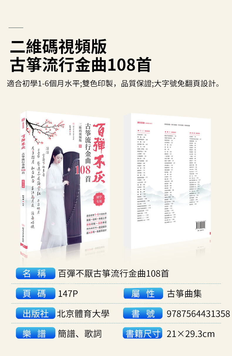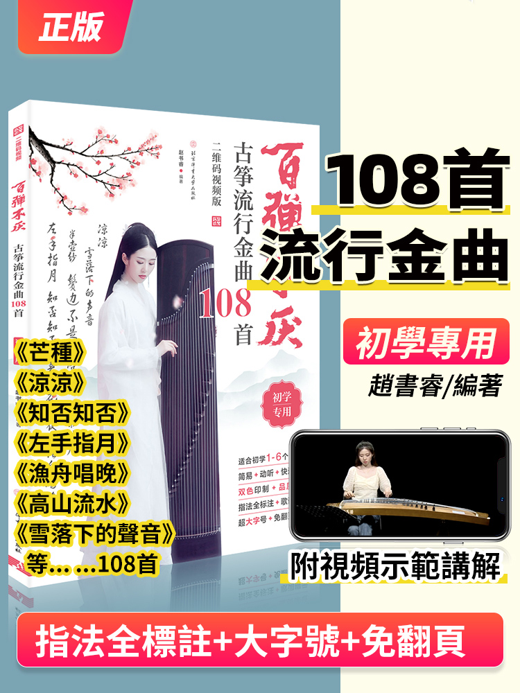 百弹不厌古筝流行金曲108首【附贈超詳細視頻教程】简谱指法入门基础知识教材教程 零基礎初學者都可以學 詳細講解,淺顯易懂