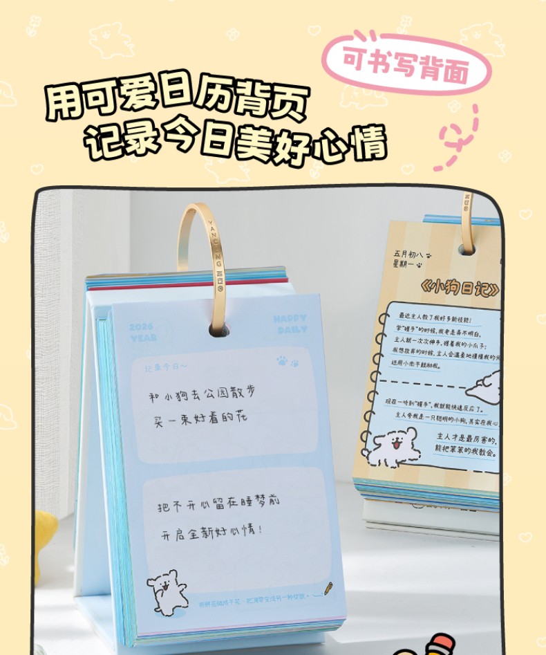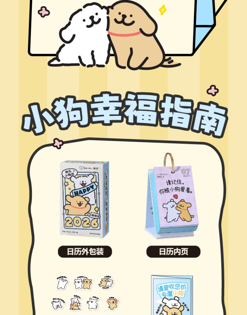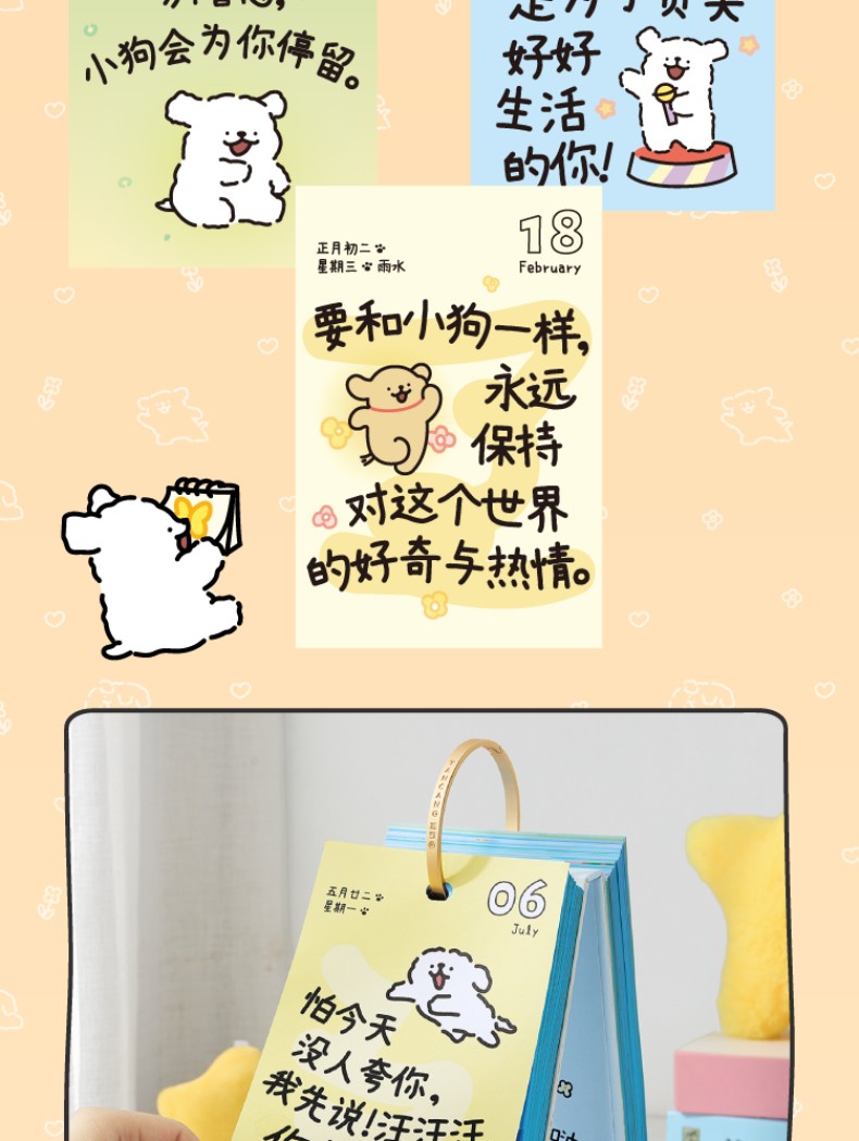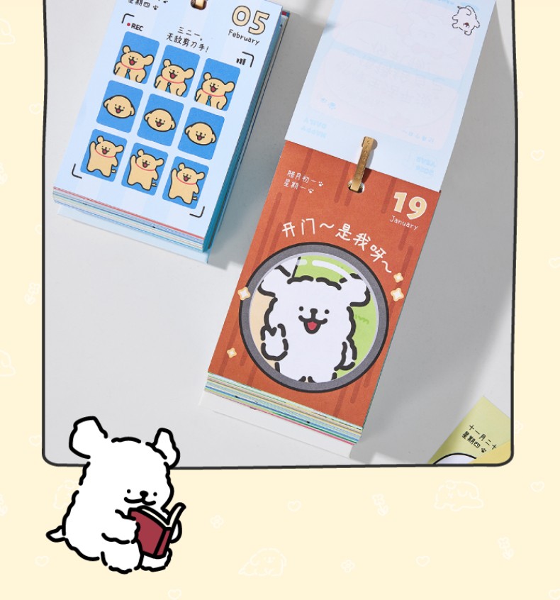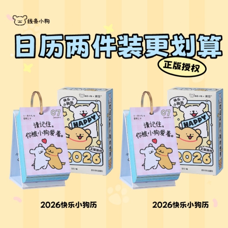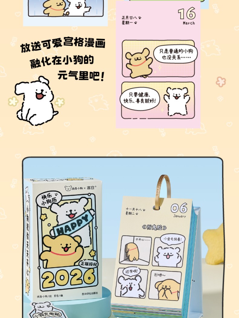 線條小狗2026日曆 快樂小狗桌曆 實用新年生日禮物