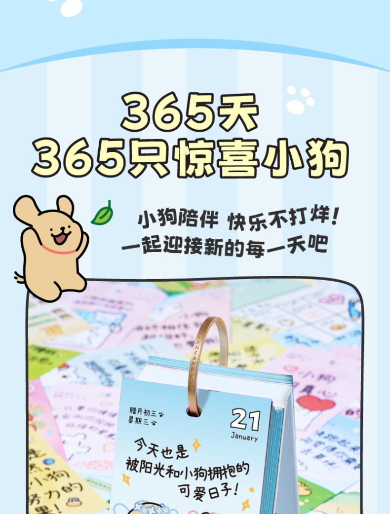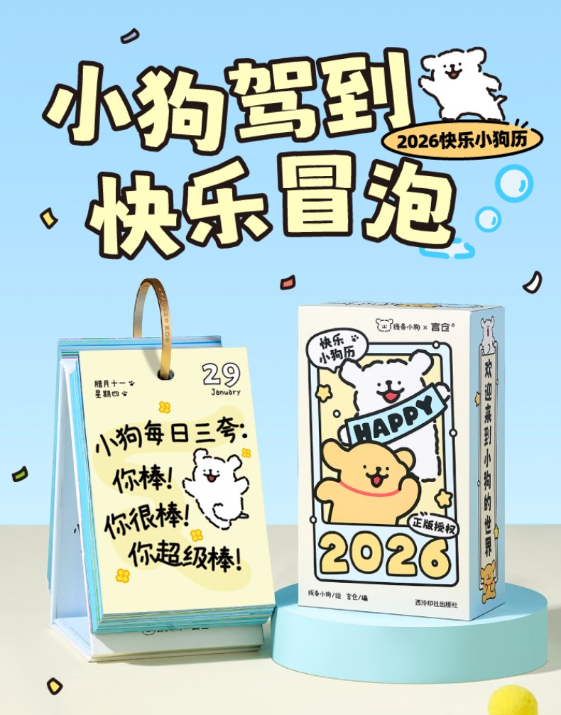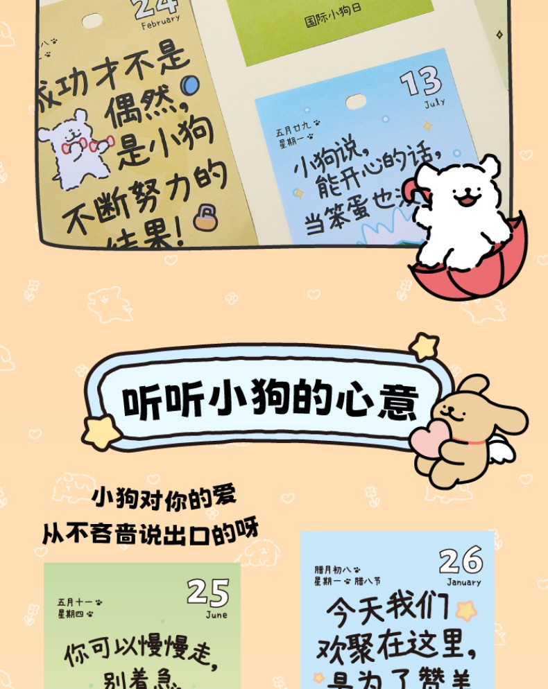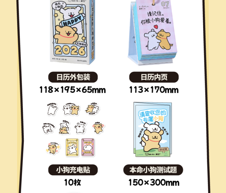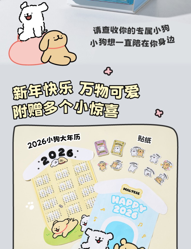 線條小狗2026日曆 快樂小狗桌曆 實用新年生日禮物