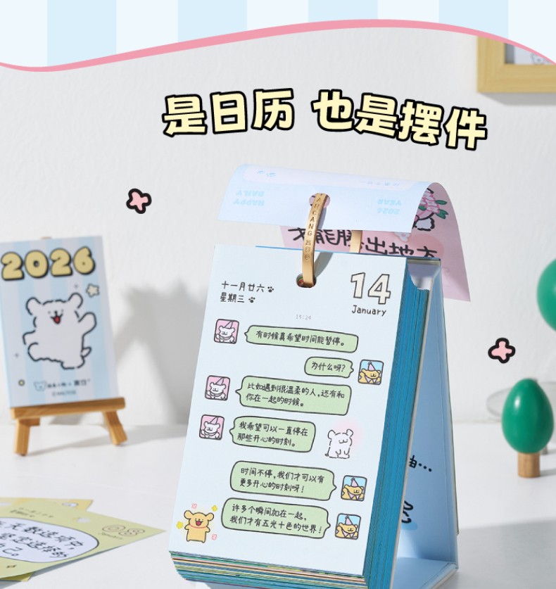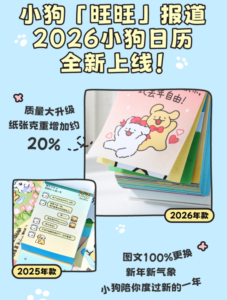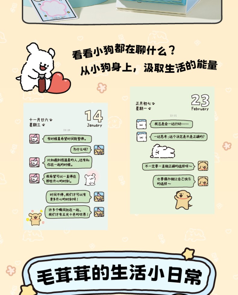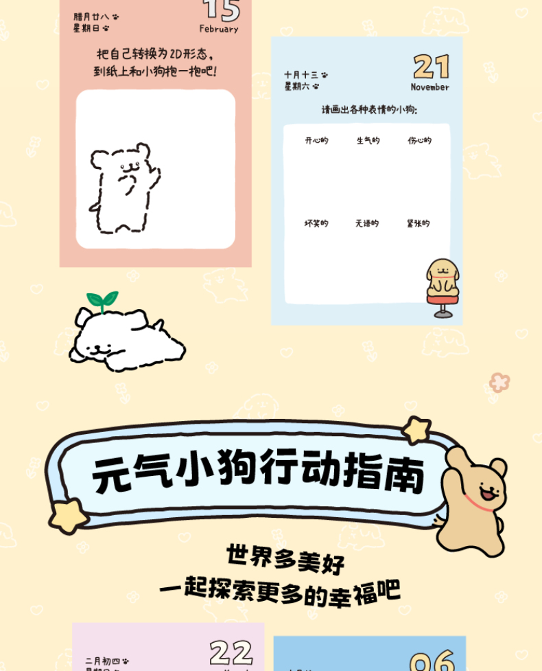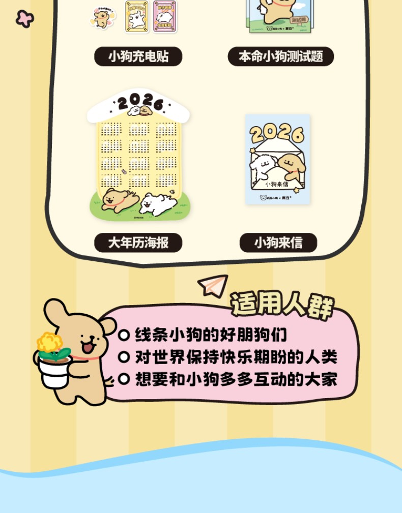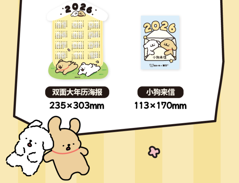線條小狗2026日曆 快樂小狗桌曆 實用新年生日禮物
