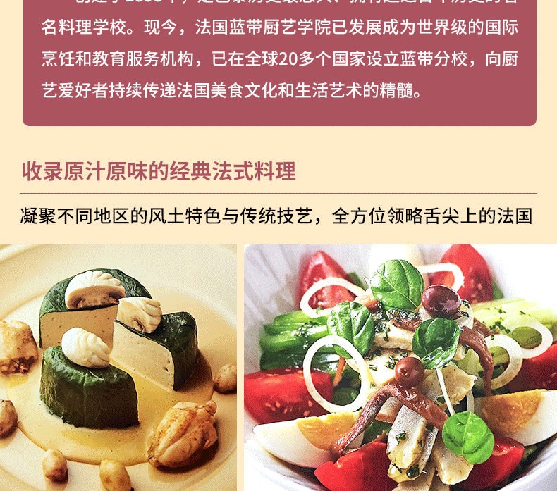 收錄原汁原味的經典法式料理,凝聚不同地區的風土特色與傳統技藝,多方面領略舌尖上的法國 詳細講解基礎烹飪技法,從底湯、醬汁、面坯、配菜的做法到肉類、蔬菜、海鮮的預處理,讓法餐製作不再高不可攀 高清美圖將成品和製作步驟清晰展現,真實還原每一道法式料理的本來面貌 全面了解不同地區各異的地理氣候、人文歷史、特色物產及飲食文化,足不出戶盡覽魅力法蘭西!