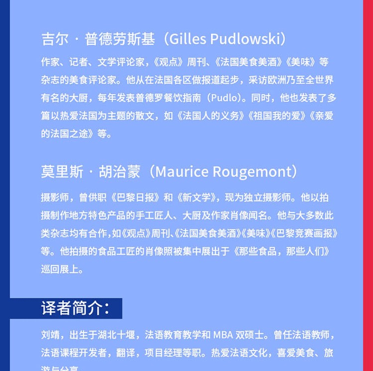 本書依據行政和美食區劃,將法國劃分為22個地區,書中詳細介紹了不同地區的地理氣候、人文歷史、特色物產及飲食文化,並選取了每個地區代表性的共83道特色料理,分步詳解製作方法。還包括底湯、醬汁、面坯、配菜的做法和肉類、蔬菜、海鮮的預處理等基礎烹飪技法。讀者通過本書能夠全面了解法國不同地區的風土人情和地道特色料理。