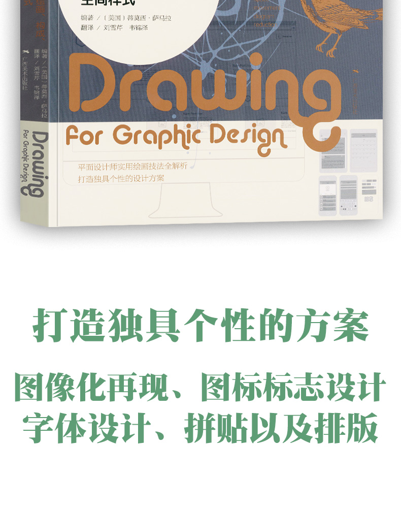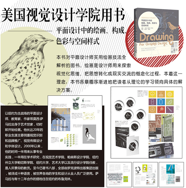 《美國視覺設計學院用書:平面設計中的繪畫、構成、色彩與空間樣式》是一本對平面設計師實用繪畫技法全解析的書。繪畫是設計師用來探索視覺化思維、把思想轉化成現實交流的概念化過程,本著這個理念,本書各章循序漸進地把讀者從學理的學習領向具體的解決方案。 「發現」這一章介紹了一些普遍性的視覺原理,如形狀語言、佈局、正負形構圖與變化節奏、空間的利用以及色彩等,以幫助讀者發現畫面感強的事物並將其可視化,也闡述了設計傳播語境下繪畫的敘事性和概念化。 「過程」這個章節概述了在創作過程中需要用到的典型的繪畫方法以及與數字繪圖、印刷製作、繪圖與其他圖像結合等相關的一些問題。每一種方法的介紹都附有一個個商業化專案案例開始結束的分析。 「創意」章節別出心裁地激勵讀者透過由簡入深的親手操練,從最基本的技能訓練到復雜的概念化,挖掘自身潛力,發展新的創意領地。每個階段的練習建議能幫助讀者將學到的新技巧立即應用到實際專案中。 「作品」一章展示了大量世界各地設計師和設計室的真實項目。這些作品充分展現了那些視覺效果獨特的手繪圖像的魔力,能為印刷品、環境設計和互動式傳播等管道提供奪人眼球、令人難忘的有效設計方案。