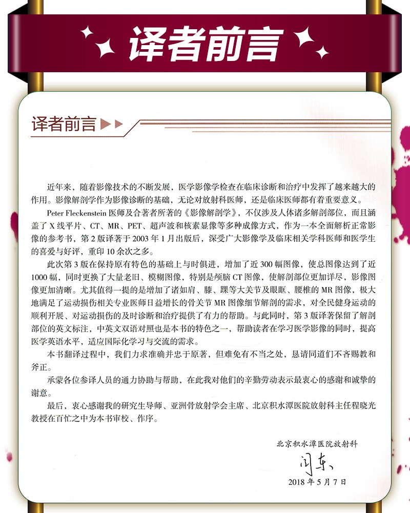 本書共10章,第1章簡要介紹解剖平面、標誌、術語、分區、多平面重組和3D成像;第2-10章重點介紹腦顱、面顱,腦,脊髓,頸,胸腔,腹部,盆部,上肢,下肢各個部分每個解剖斷面的CT、MRI、3D圖像、血管圖像,以及對應的解剖圖和線條圖,同時對於常見解剖結構配有必要的文字描述,幫助大家在學習CT和MRI過程中更輕鬆、快速的掌握閱片基礎。