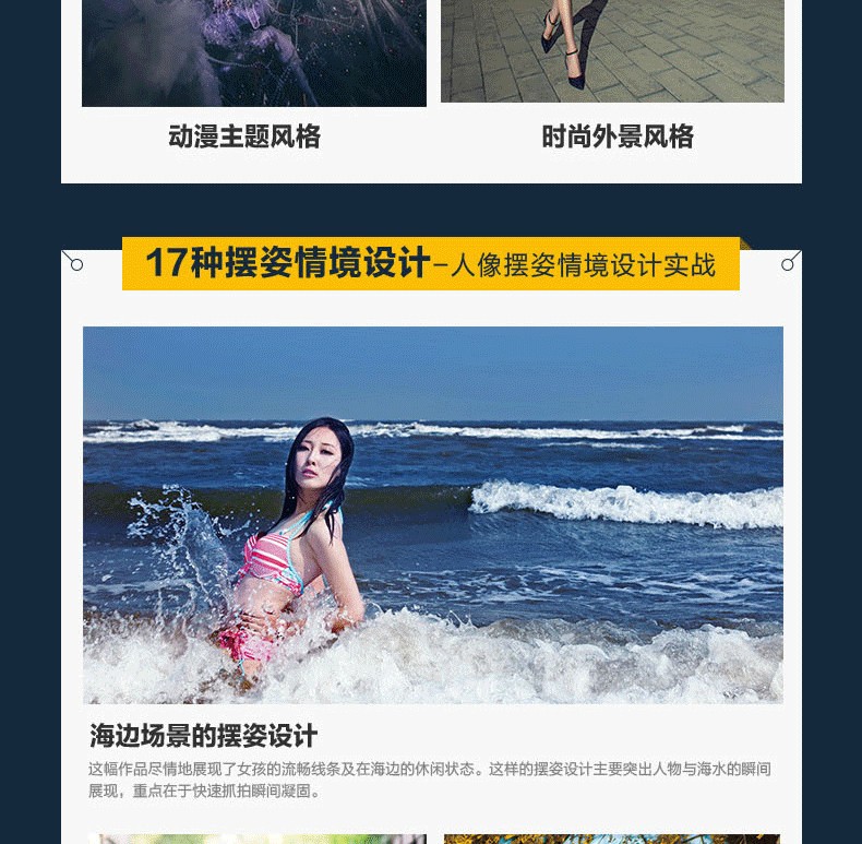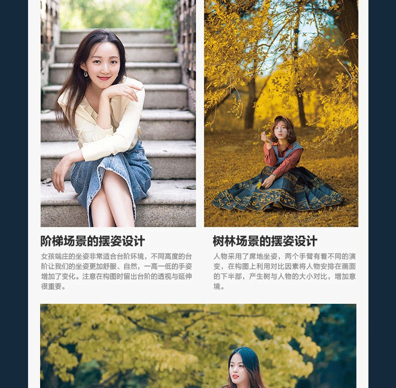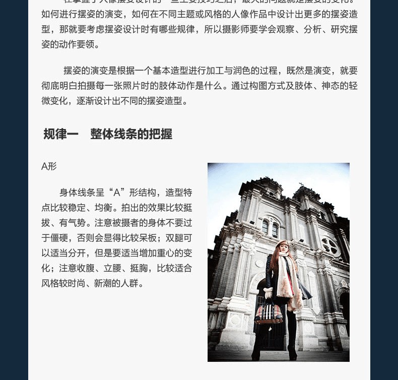 站姿、坐姿、蹲姿、躺姿、趴姿、跪姿等美姿設計技巧講解。擺姿技巧+構圖技法+服裝搭配+主題風格+情境設計,系統介紹如何打造攝影師鏡頭前的寵兒。精選清新、復古、哥特、森系、動漫、時尚等六大主題風格的擺姿設計,以及海邊、公園、古建築等17種擺姿情境設計實戰,激發讀者的創作靈感。