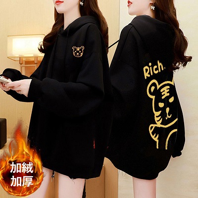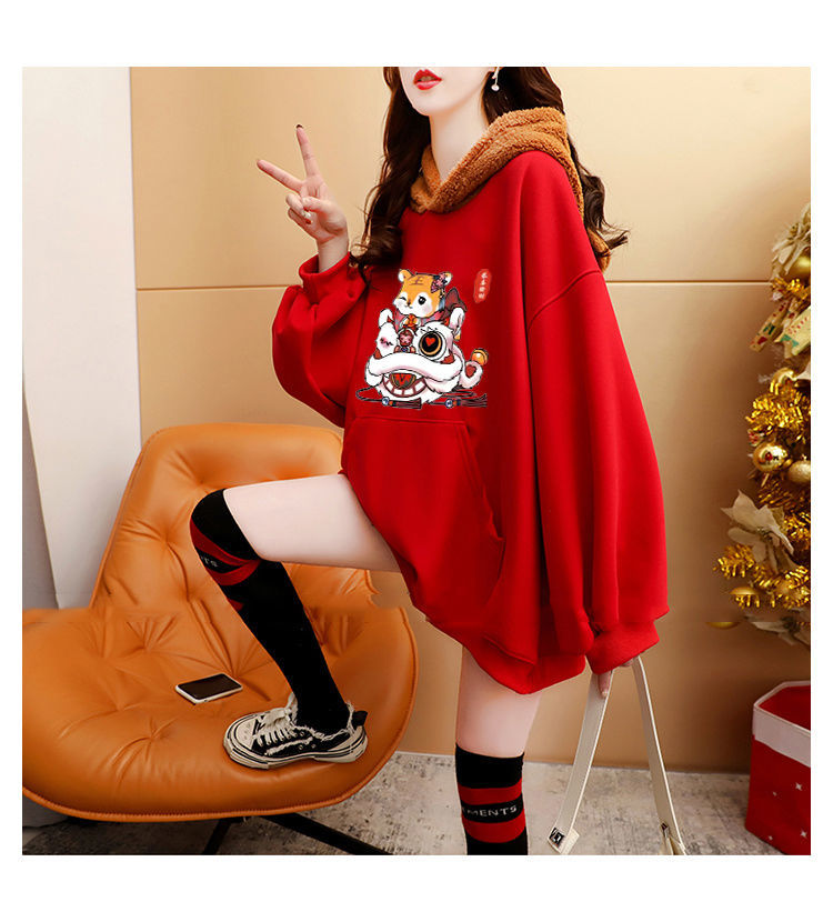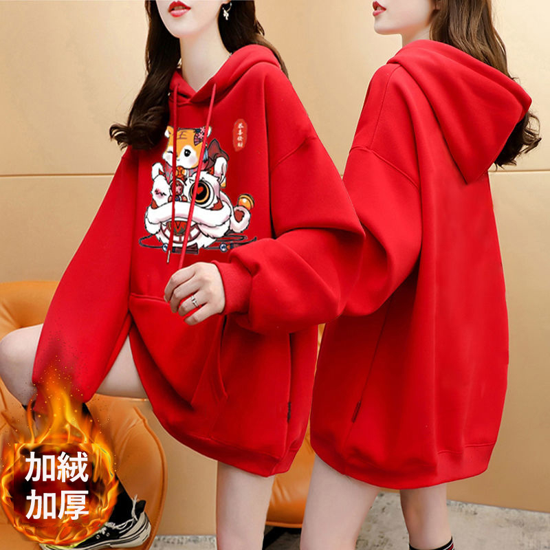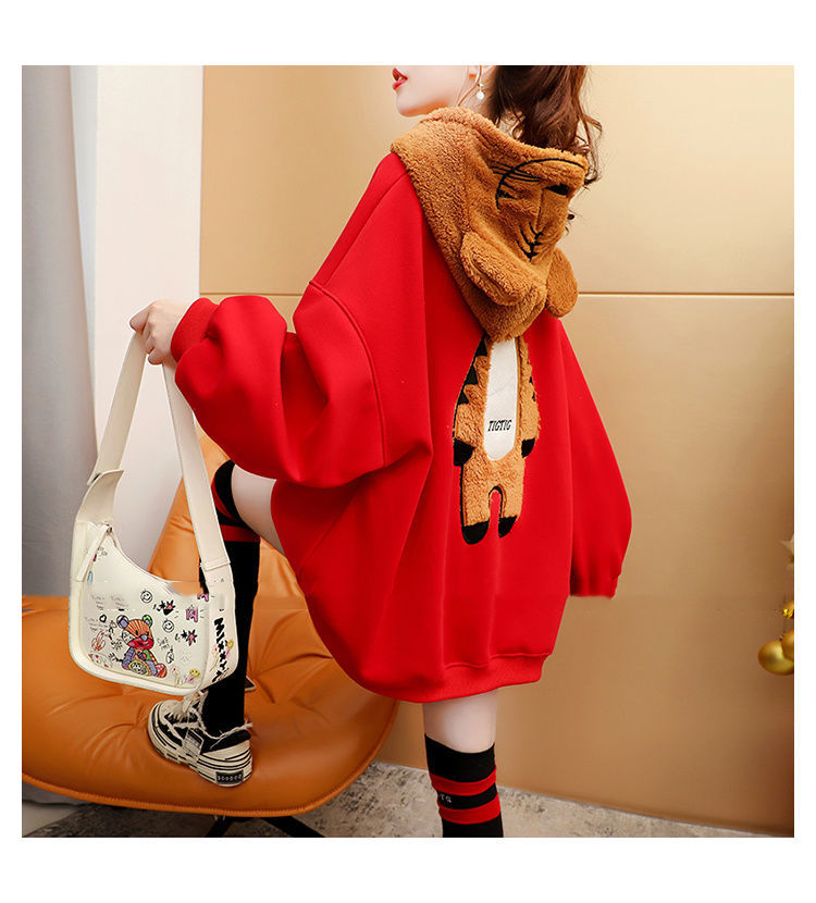 虎年本命年春節衛衣 加絨加厚款衛衣女 ins秋冬新款保暖連帽衫