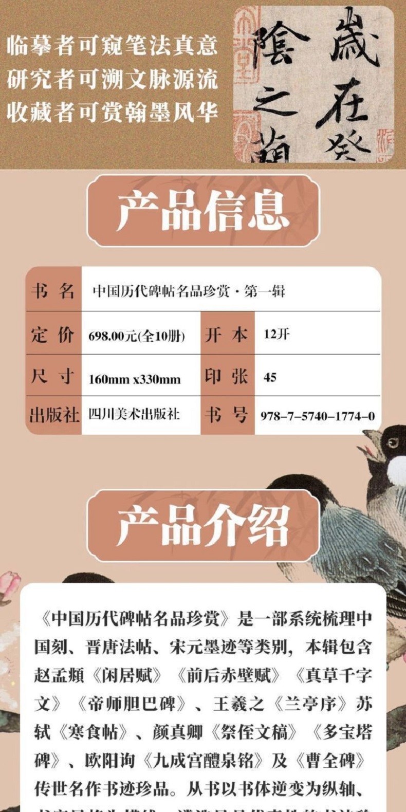 中國歷代碑帖名品珍賞第一輯(共10冊)原大尺寸 原貼呈現 適合書法愛好者臨摹學習