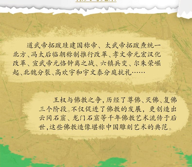 南北朝時期,群雄割據、時局混亂,游牧草原的拓跋鮮卑一族乘勢而起、統一中原,建立起一個以中原禮樂治邦的神奇王朝。 《神奇的北魏》以魏晉南北朝為歷史背景,以史料為基礎,人物為主線,生動描述了鮮卑族拓跋氏邊地南遷、內附中原、建立北魏、與南朝劃江而治、稱雄東亞及至ZUI後融合於中華民族的歷史。濃墨重彩地記錄了道武帝拓跋珪建國稱帝、太武帝拓跋燾統一北方、馮太后臨朝稱制推行改革、孝文帝元宏漢化改革、宣武帝元恪鍾離之戰、六鎮兵變、爾朱榮崛起、北魏分裂、高歡和宇文泰分庭抗禮等歷史事件。本書對戰爭謀略、官場政治、宮廷權術均有涉及,是一部寫給大眾的北魏斷代史通俗讀本。