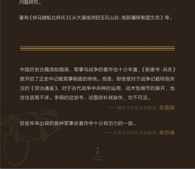 李碩,河北保定人。北京大學中文系本科,清華大學歷史系碩士、博士,現供職於新疆大學西北少數民族研究中心。從事中古軍事史、歷史地理、邊疆民族問題研究。著有《鐵馬樓船北府兵》《從大漠綠洲到玉石山谷:南新疆探索圖文志》等,在《中華文史論叢》《學術月刊》《歷史地理》《敦煌研究》等刊物發表學術論文多篇。