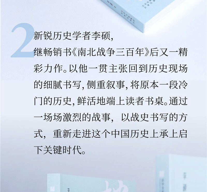 作者李碩試圖還原古代冷兵器戰爭的本來面貌,探討戰爭、戰役背後的諸多製約因素,並從戰爭的角度研究歷史與社會。他的基本觀點是:發生南北分裂的根源,在於北方少數民族騎兵擁有了對中原王朝步兵的壓倒性優勢,而南北分裂之所以維持近三百年,與中國南北方的地理環境差異有重要關係,即南方水網叢林地帶不便於北方騎兵作戰,而南方軍隊依賴水運,不適應乾旱的北方環境,所以南北政權都長期難以實現統一;至於南北分裂的終結,則是南北方社會與政治整合的產物,即北方少數族政權在充分的中原化(漢化、封建化)之後,更有效地利用了漢地的軍事資源與軍......