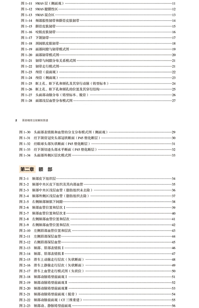 圖2-2 額部中央區皮下組織及其內部血管 35