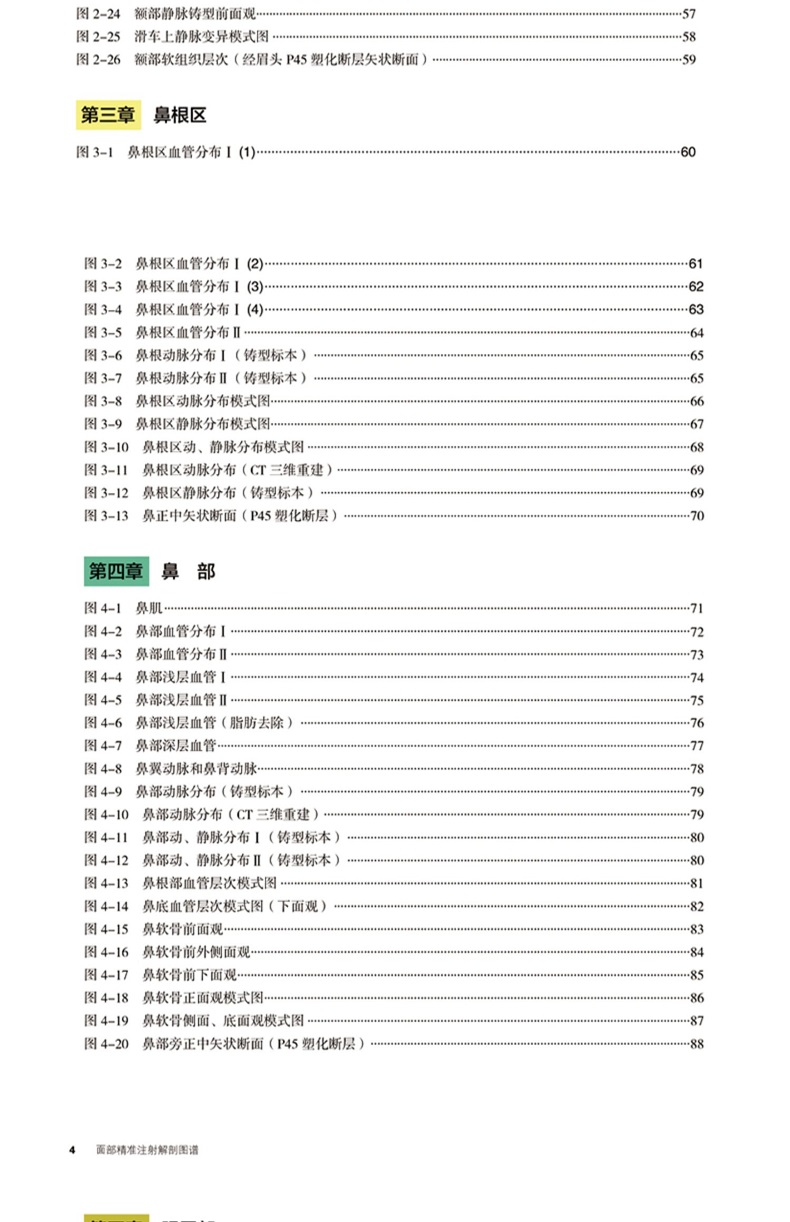 《面部精準注射解剖圖譜》是一本內容詳盡、標本層次結構清晰的實物圖譜。本書首先通過新鮮標本的動、靜脈灌注後,根據微注射的臨床需求在面部分部位進行了逐層解剖,拍攝了大量視角獨特的實用的實物照片,並且本書還利用血管鑄型技術、三維重建技術等獲得了面部動脈和靜脈分佈的全貌。 P45斷層塑化技術是的斷層標本製作技術,本書應用該技術清晰的顯示了面部的層次,尤其是完整的展示了SMAS層。同時本書繪製了精美的標本示意圖,使晦澀難懂的部分更加清晰。該書從籌備到完稿歷時1年半,*終精選照片、圖片240餘幅,圖譜內容詳實、圖片清晰、圖解充分,編排細緻,力求全面呈現面部的解剖層次和血管分佈,從而為面部微注射技術有效地提供解剖基礎。希望本書能夠成為廣大醫學生、醫學美容教育工作者和醫學美容臨床醫生的得力助手。