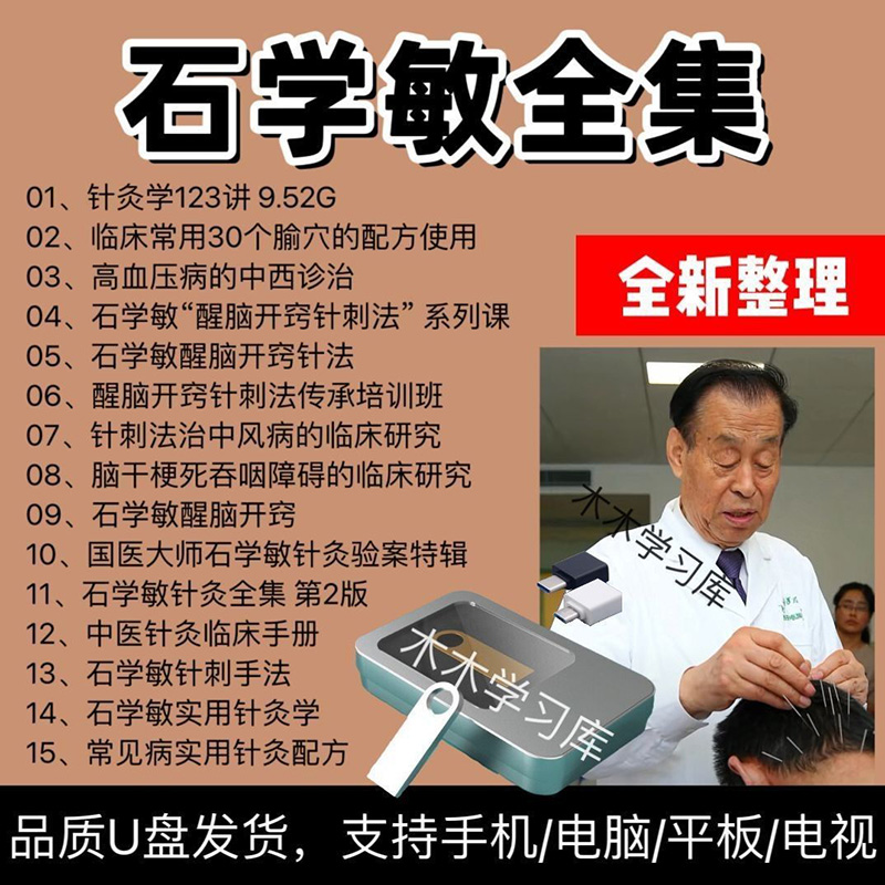 石學敏全套針灸教學影片 針刺手法 全套針灸教學 醒腦開竅針法全集(128G U盤發貨 免下載 即插即看 )附贈 石學敏全套書籍PDF文檔