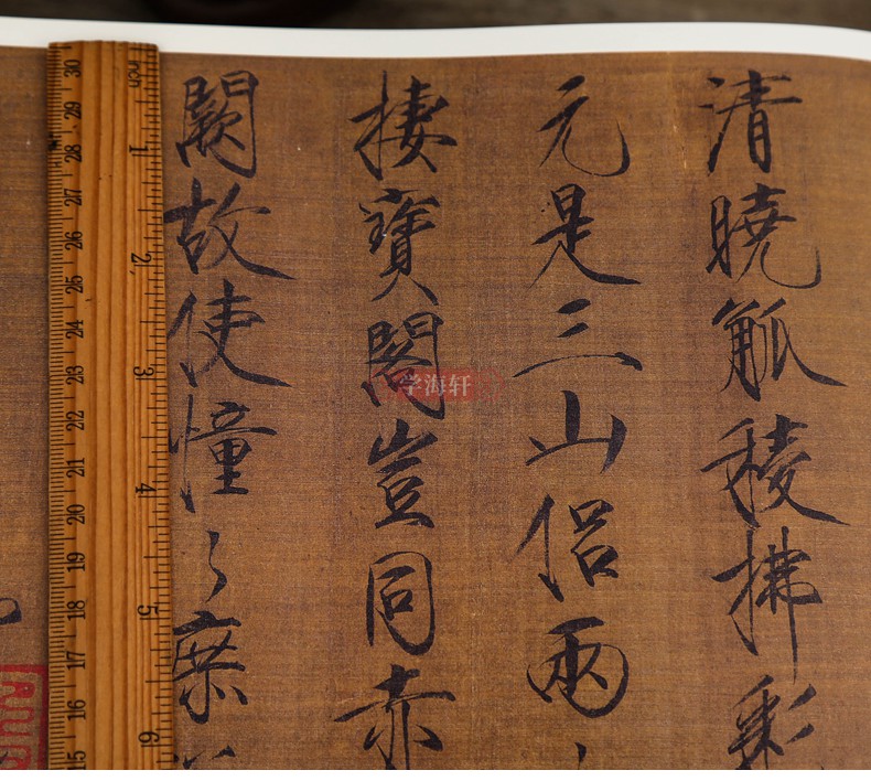 在台北故宮博物院,珍藏一卷宋徽宗以瘦金體書寫的五言律詩,名為“穠芳詩”。其詩文是:“穠芳依翠萼,煥爛一庭中。零露霑如醉,殘霞照似融。丹青難下筆,造化獨留功。舞蝶迷香徑,翩翩逐晚風。”這卷大字瘦金書為絹地,二十行,每行兩個字,共計四十字。其書風獨具,瘦硬中寓腴潤之致,其銀鉤鐵畫,豪氣躍然,顯現出書家精深的藝術功力。此作縱二十七點七厘米,橫三百四十厘米,卷後有陳邦彥觀款:“宣和書畫超軼千古,此卷以畫法作書,脫去筆墨畦迳,行間如幽蘭叢竹,冷冷作風雨聲,真神品也。”《彩色放大本中國碑帖:宋徽宗書穠芳詩》將原件放大印出,供廣大讀者鑑賞。