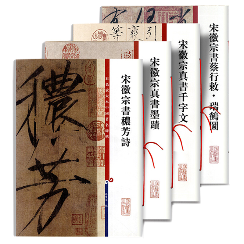 宋徽宗書法合集 8開彩色放大本 便於臨摹 宋徽宗書蔡行敕 書穠芳詩 真書千字文 真書墨跡 全4本 趙佶瘦金體毛筆字帖書法臨摹貼