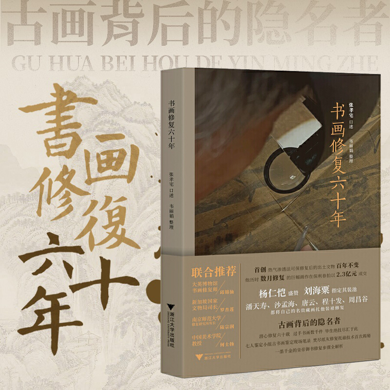 《書畫修復六十年》一書,講述張孝宅先生古書畫修復六十年生涯,從學藝開始到修復各類古書畫文物的故事。本書為中國美術學院張孝宅教授56年從事中國古代書畫修復經驗的首次集結,作者是國內少數願意公開私傳書畫修復技藝的專家,十分難得。