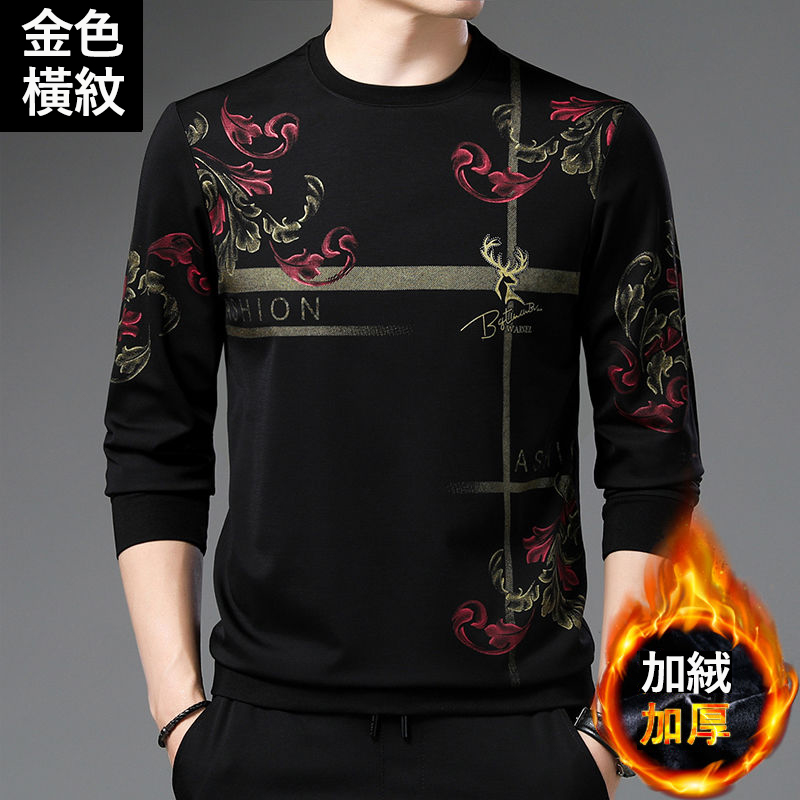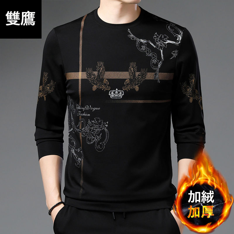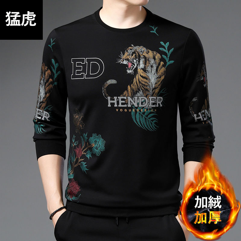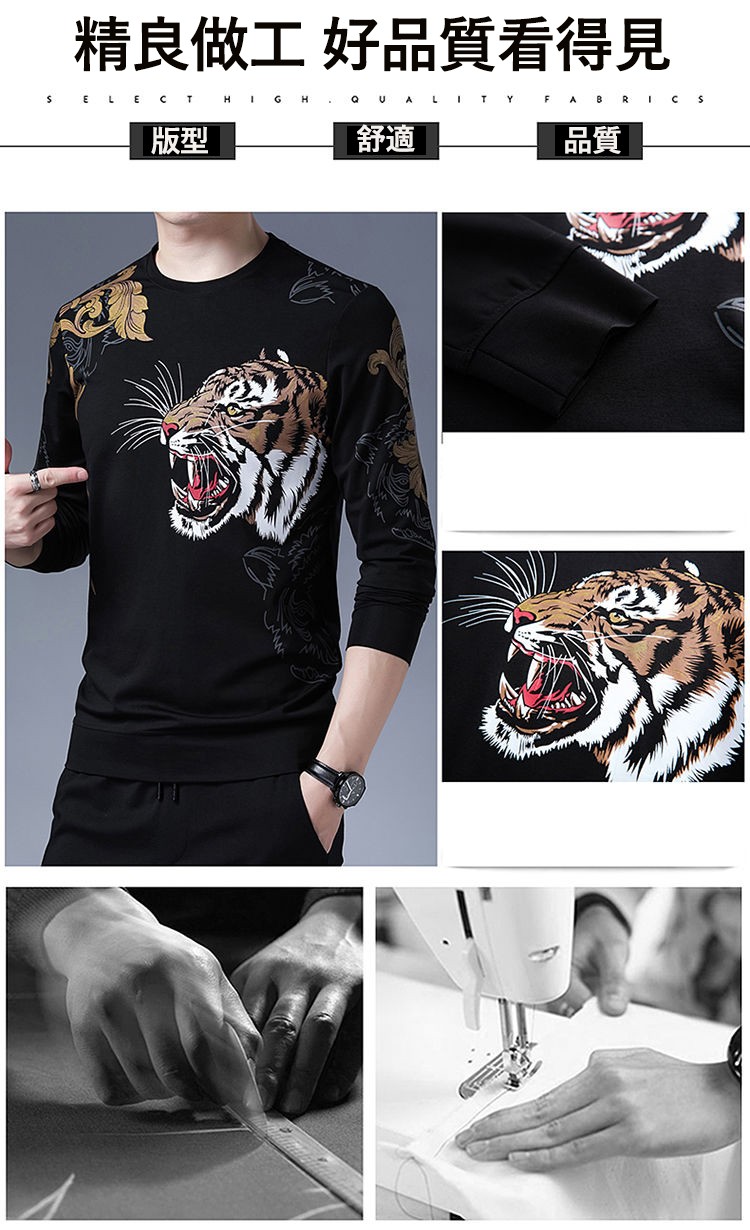 印花虎虎生威 新款男士時尚圓領長袖T卹 春秋季打底衫衛衣 冬款加絨加厚男裝上衣(12款圖案任君選擇)
