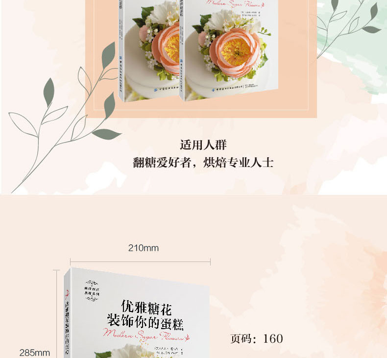 糖花作為翻糖的一個門類,以其逼真、美觀的表現形態,成為蛋糕裝飾推薦的方法與技巧。本書以介紹糖花製作的工具、糖花的製作技巧以及實際案例為主,以超多步驟圖的形式展示了幾十種糖花的製作方法,從基礎的配色、製作講起,按照由易到難的順序,層層遞進,難度逐漸加深,從製作單一花朵開始,到製作花束,再到各種花的搭配和組合。還將婚禮蛋糕等特定場合使用的蛋糕的設計,作為一個單獨的主題來講述,非常實用。本書圖片精美,風格清新,製作過程詳細,可作為蛋糕裝飾的工具書使用。作者簡介